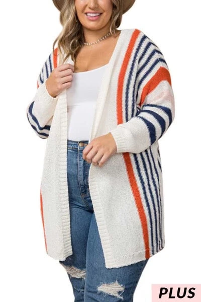 37 OR 12 OT-N {Making Way} Beige/Striped Cardigan PLUS SIZE 2X/3X