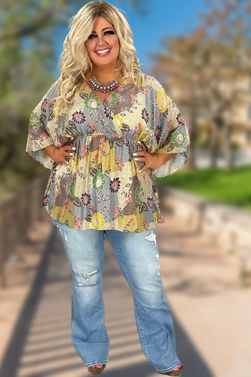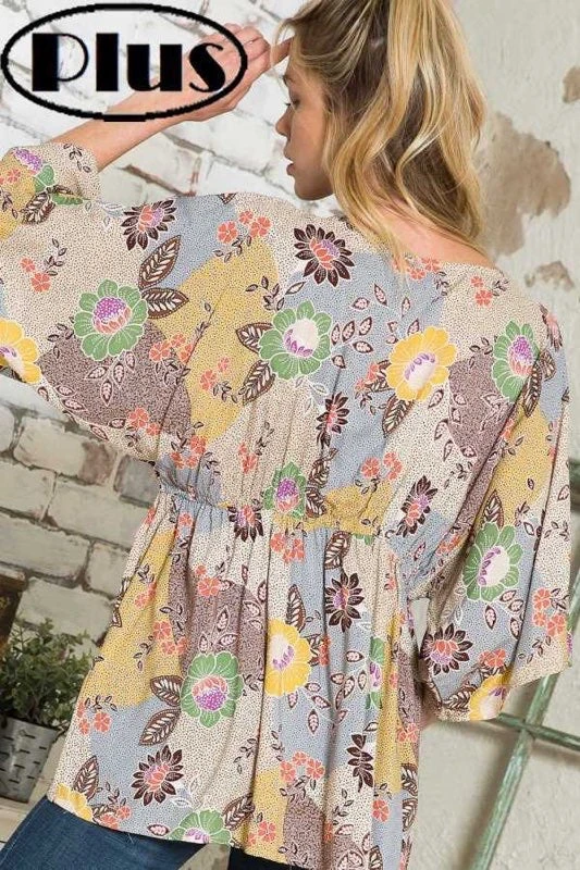 37 PSS-Y {A Bit Confusing} Multi-Color Print Babydoll Top PLUS SIZE 1X 2X 3X