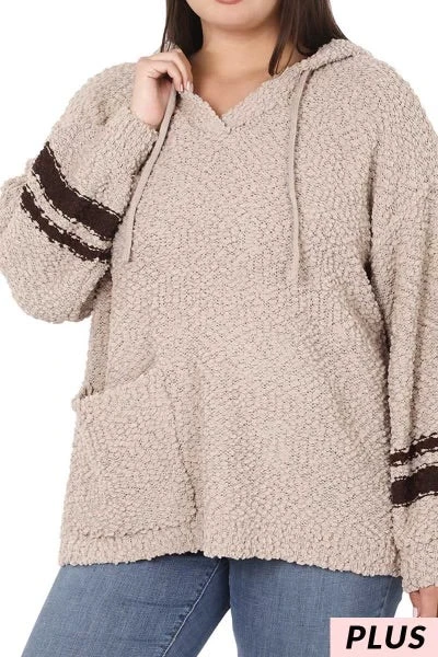 41 HD-G {Give It A Whirl} Mocha Knit SALE!! Hoodie W/Pocket PLUS SIZE 1X 2X 3X