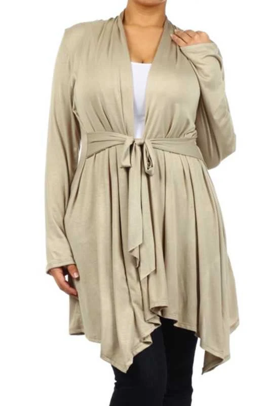 41 OT-E {Enamored With You} Taupe Tie Front Cardigan SALE!! PLUS SIZE XL 2X 3X