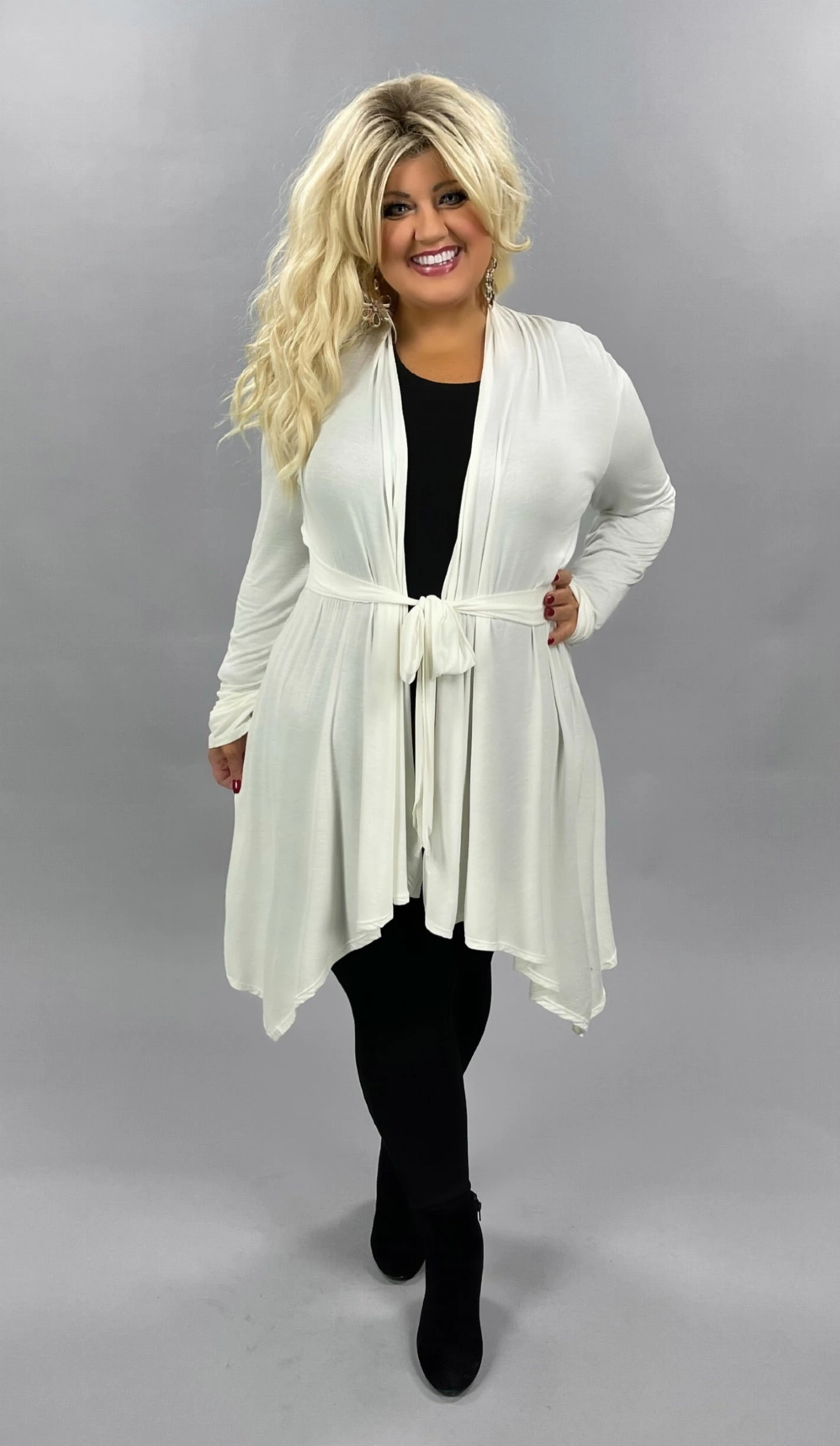 41 OT-E {Pure & Beautiful} White Tie Front Cardigan PLUS SIZE XL 2X 3X