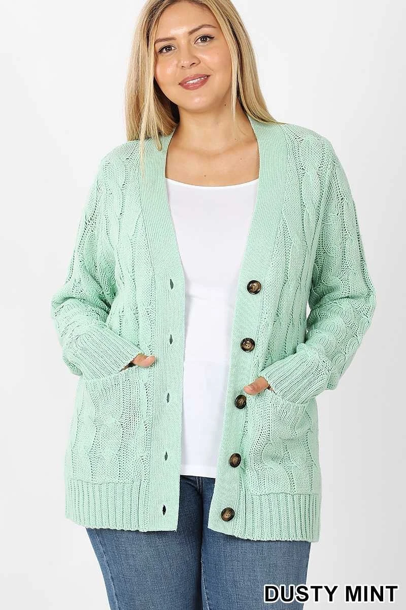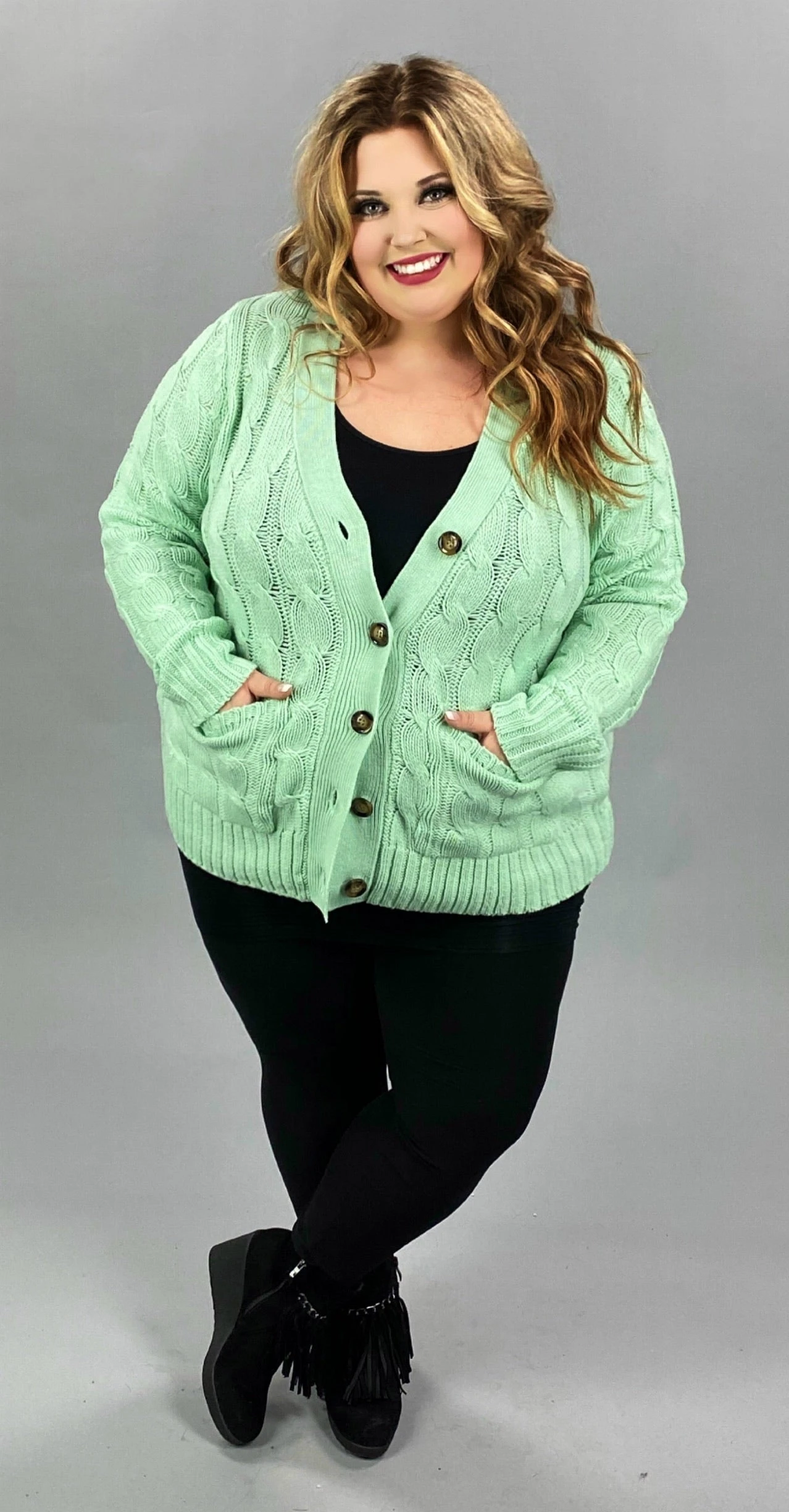 41 OT-X [Sweet Pistachio Cream} Mint Ribbed Cardigan W/front Pockets PLUS SIZE 1X 2X 3X