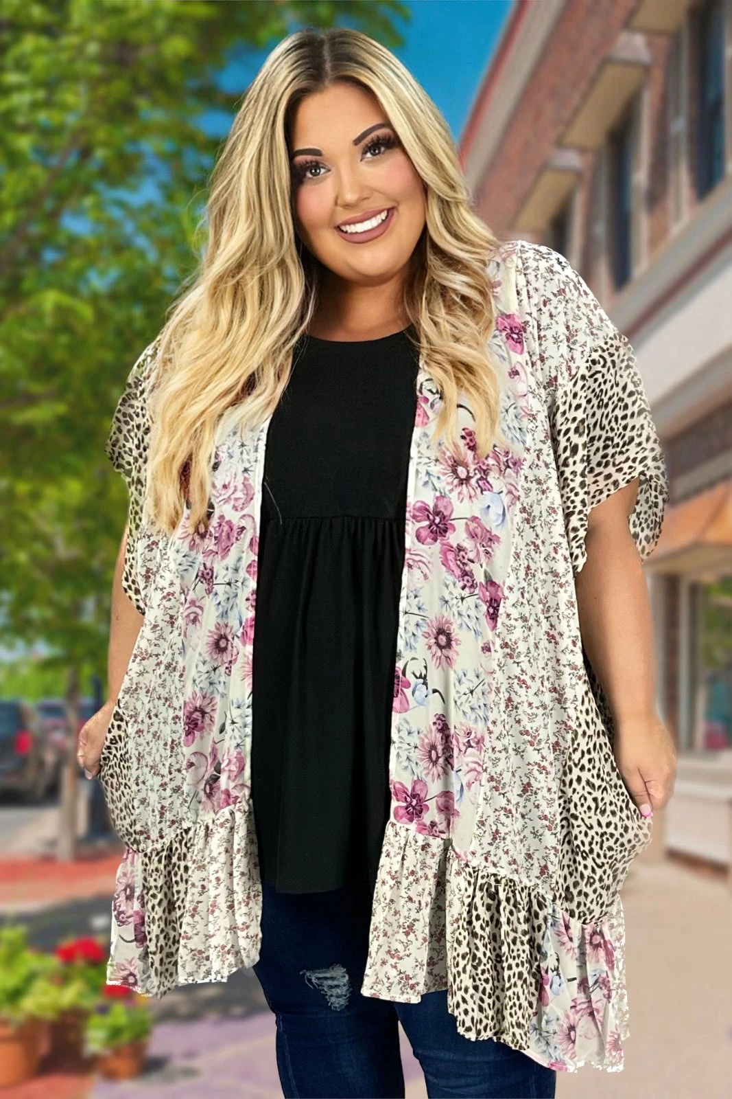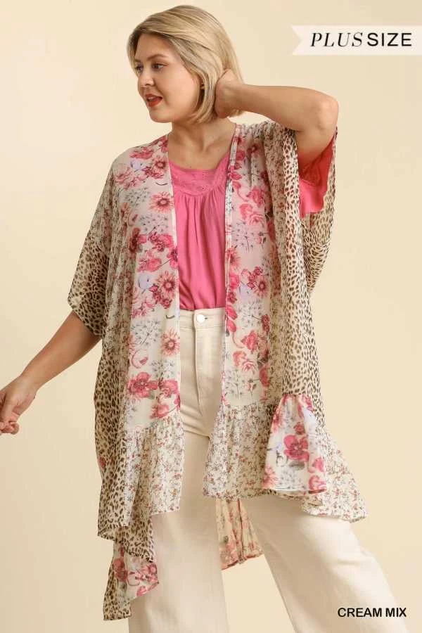 42 OT-V {Sweet Meeting} Umgee SALE! Cream Print Kimono PLUS SIZE XL/1X 1X/2X