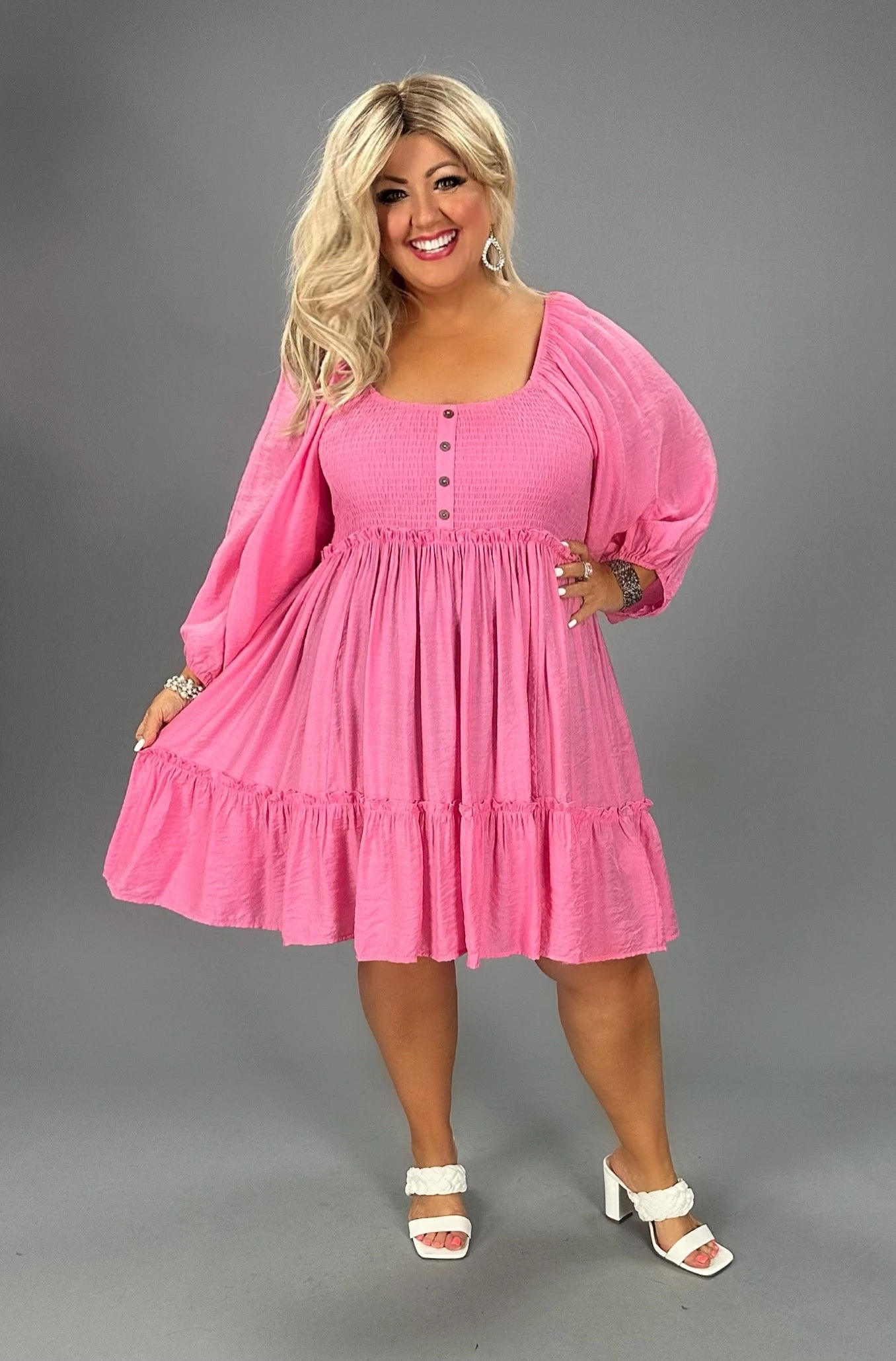 46 SQ-A {Into Bliss} Umgee Pink Smocked Dress PLUS SIZE XL 1X 2X
