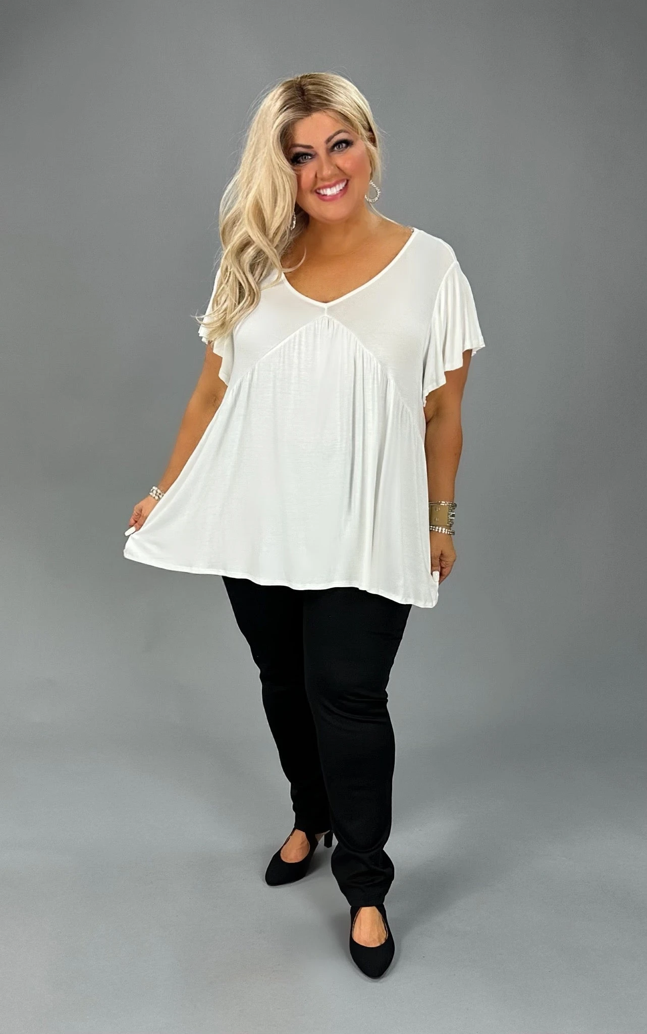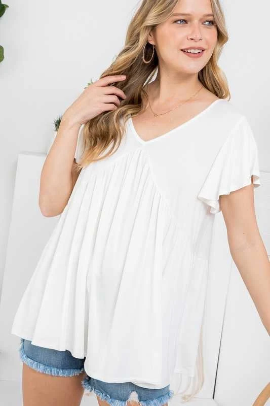 47 SSS-C {Say You Love Me} Ivory V-Neck Babydoll Top PLUS SIZE XL 2X 3X