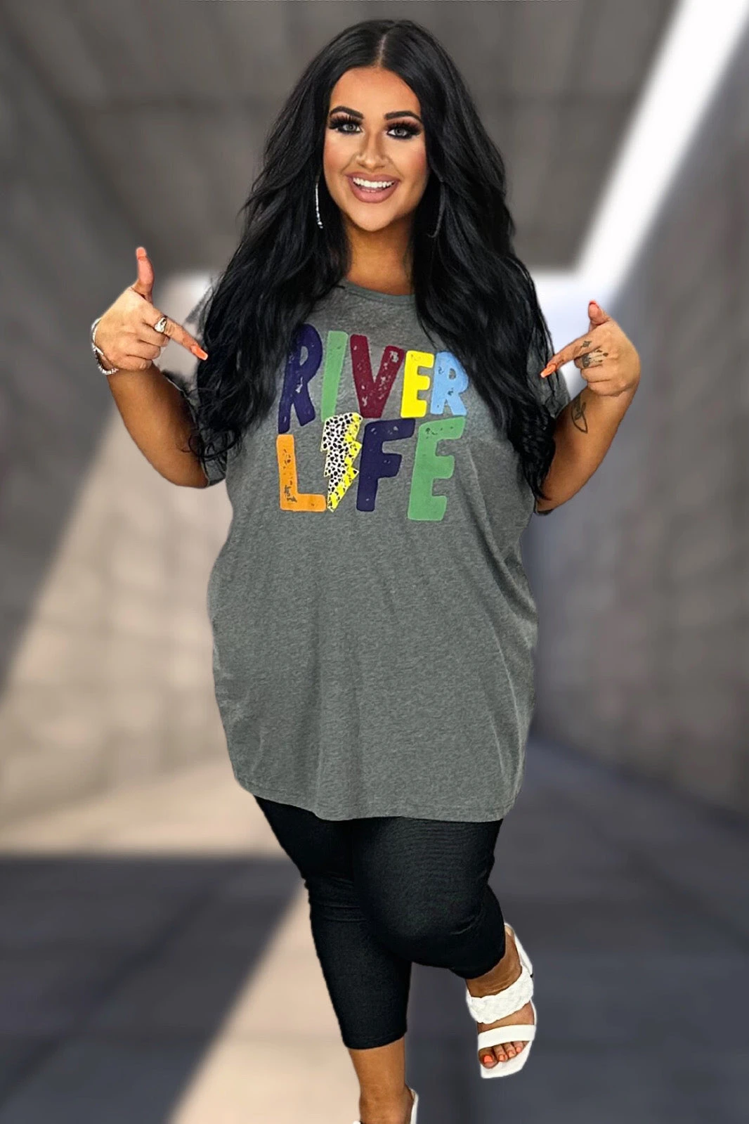 52 GT-I {River Life} Deep Heather Grey Graphic Tee PLUS SIZE 3X