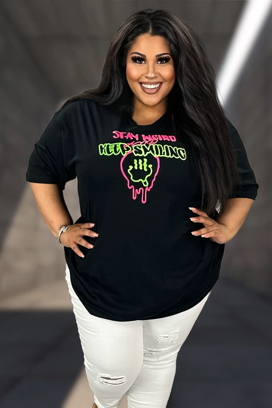 52 GT {Stay Weird And Keep Smiling} SALE! Black Graphic Tee PLUS SIZE 1X 2X 3X