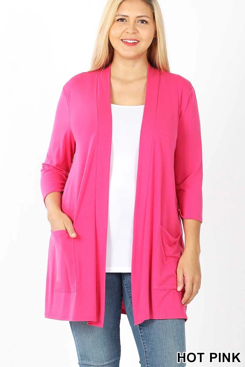 53 OT-A {Love Sick} Fuchsia Light Weight 3/4 Sleeve Cardigan Plus Size XL 2X 3X