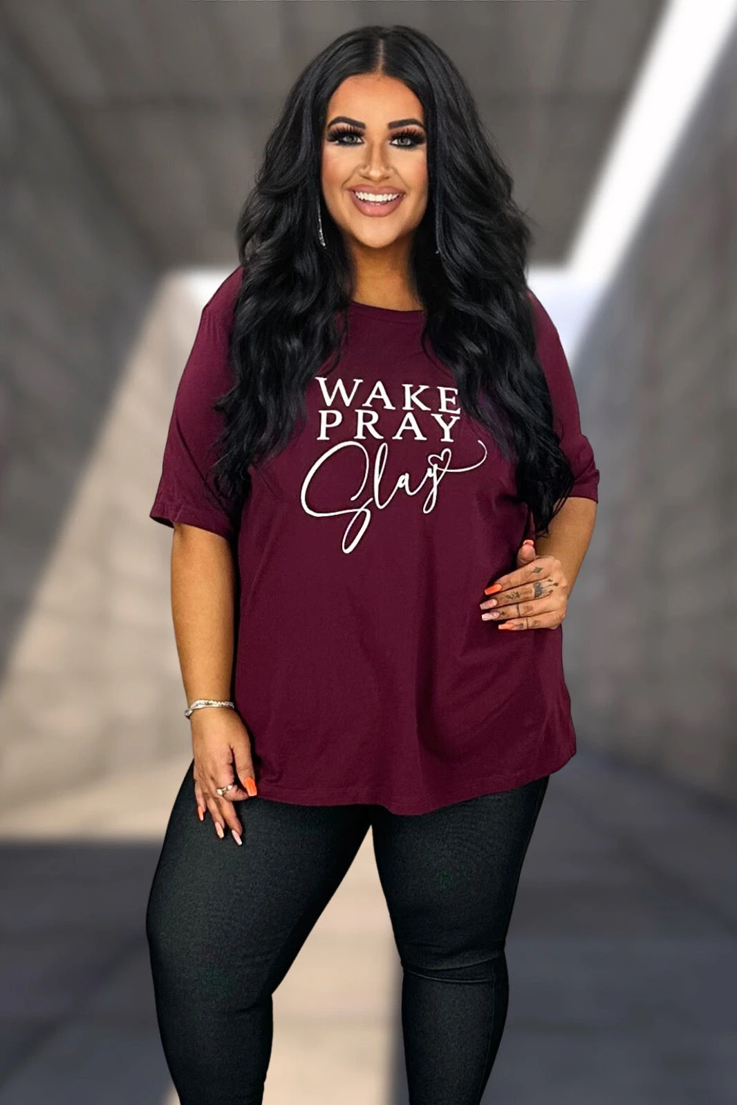 54 GT-H {Wake Pray Slay} Burgundy Graphic Tee PLUS SIZE 3X