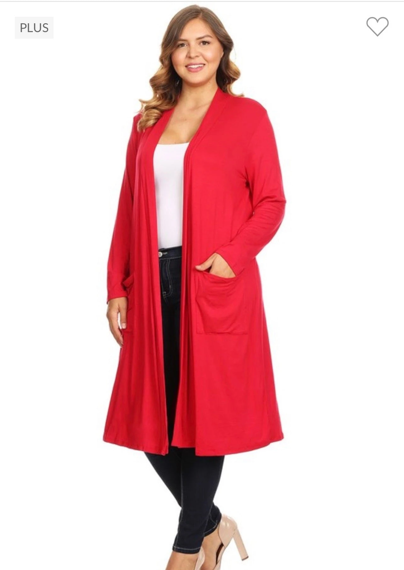 54 OT-C {Never Too Late} Red Duster W/Pockets PLUS SIZE 1X 2X 3X