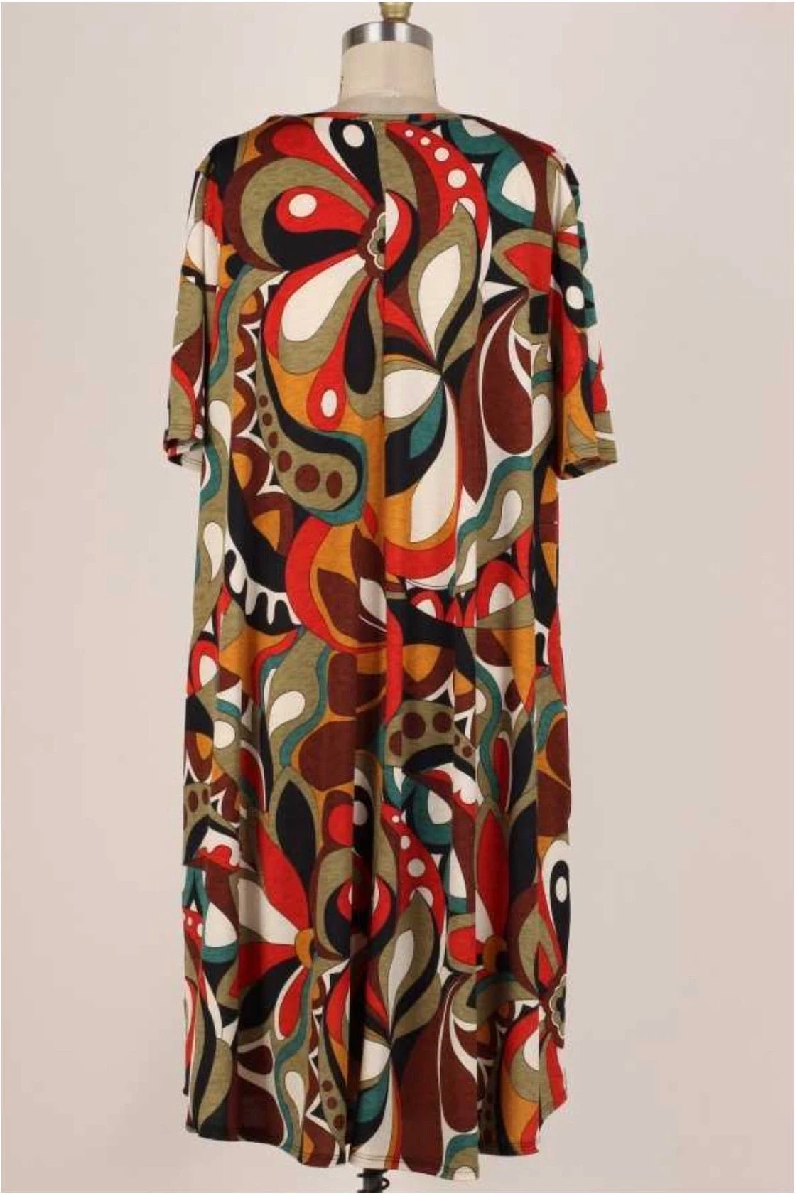 54 PSS-A {Fan Favorite} Brown Abstract Print Dress Plus 1X 2X 3X