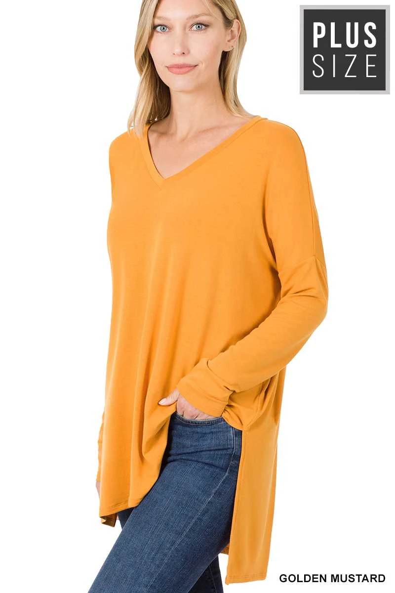 56 S SLS-B {Now & Zen} Golden Mustard V-Neck Tunic Plus Size 1X 2X 3X