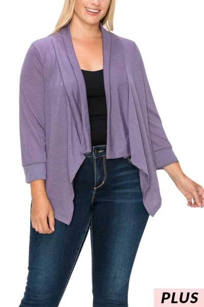 59 OT-B [Thrilled To Be Here} Light Purple 3/4 Sleeve Cardigan PLUS SIZE 1X 2X 3X