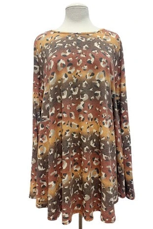 60 PLS-Y {Now You’re Talking} Brown Animal Print Top EXTENDED PLUS SIZE 3X 4X 5X
