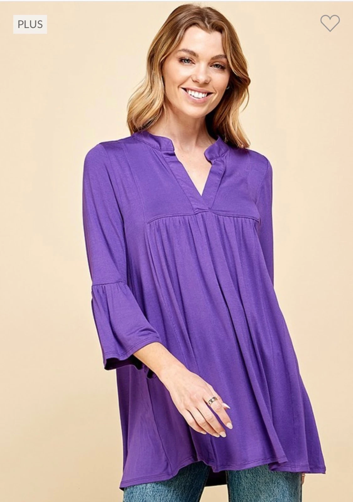 62 SQ-D {Pretty Pleasing} Solid Purple Babydoll V-Neck Top PLUS SIZE XL 2X 3X