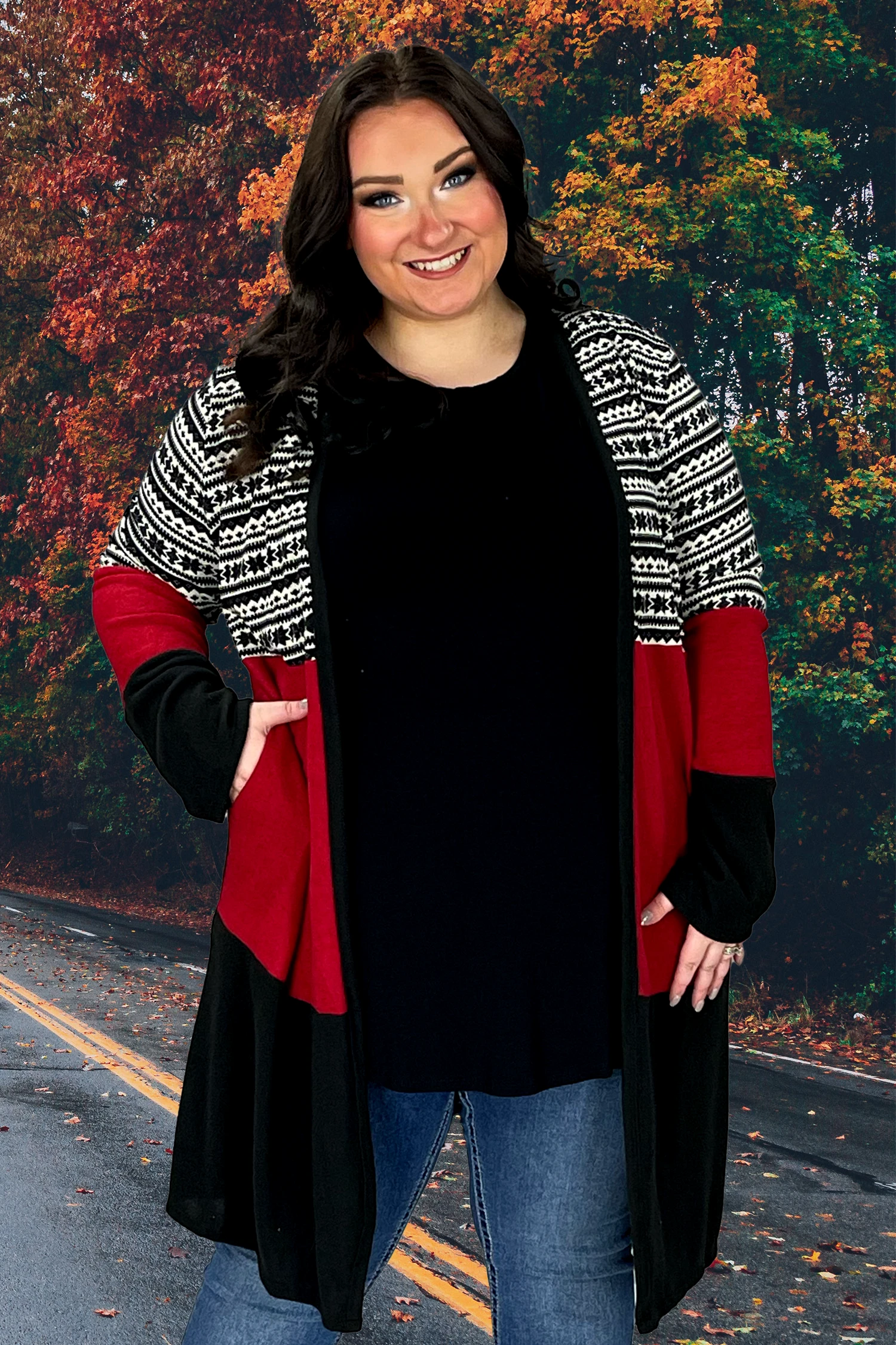 63 OT-A {Bundle Up Baby} Red/Black Print Duster PLUS SIZE 1X 2X 3X