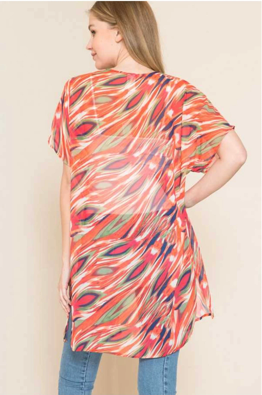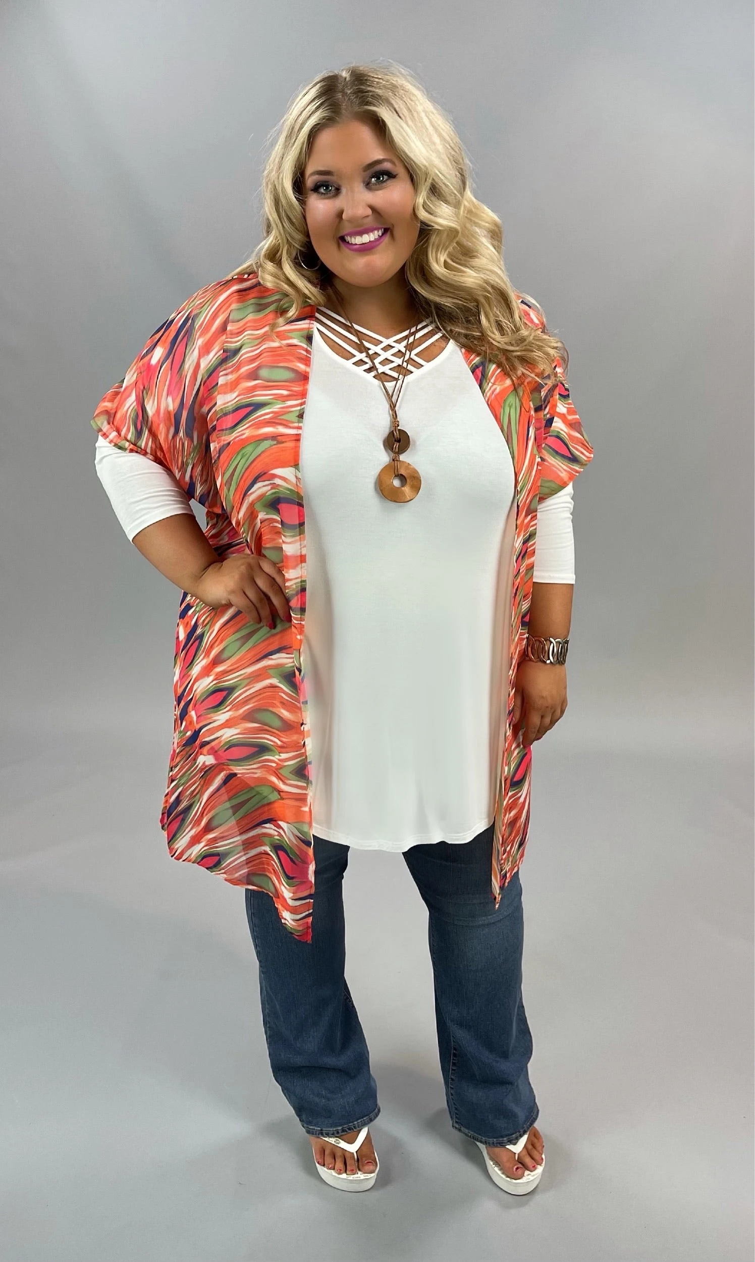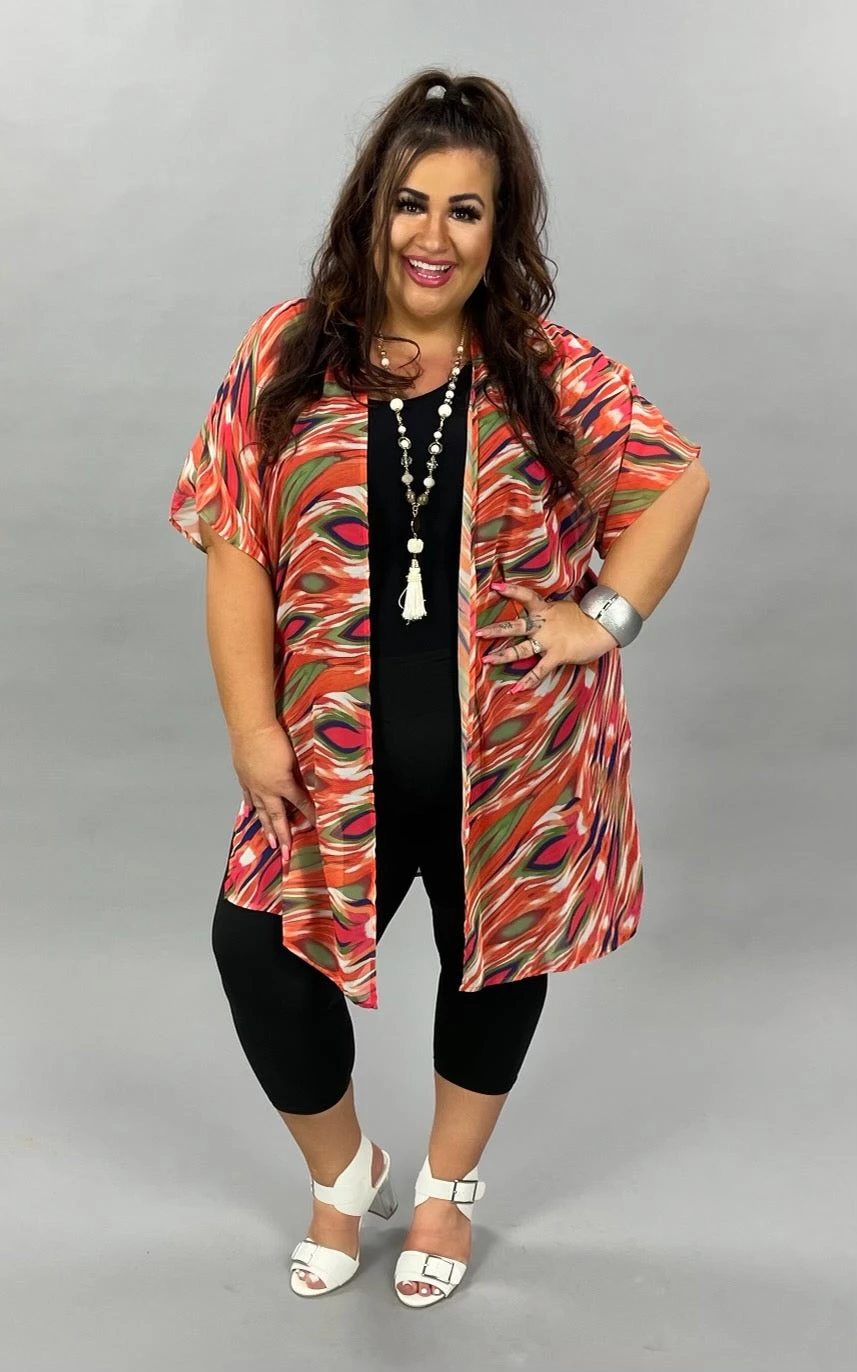 63 OT-E {Fashionista} Multi Print Sheer Kimono PLUS SIZE XL 2X 3X