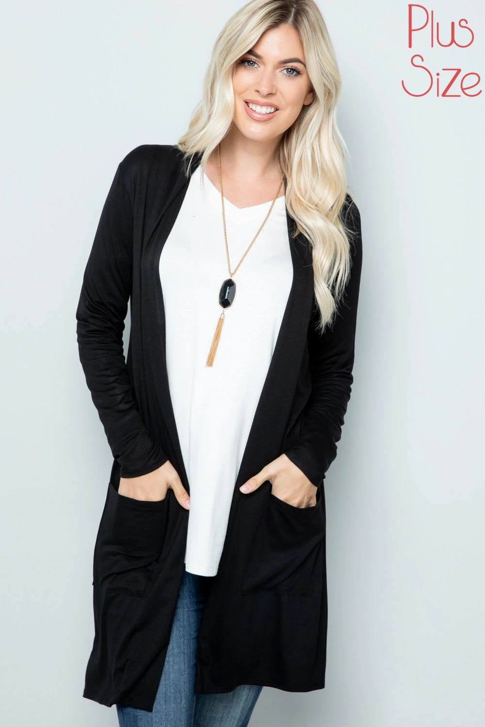 64 OT {Best In Show} Black Duster W/Front Pockets PLUS SIZE 1X 2X 3X