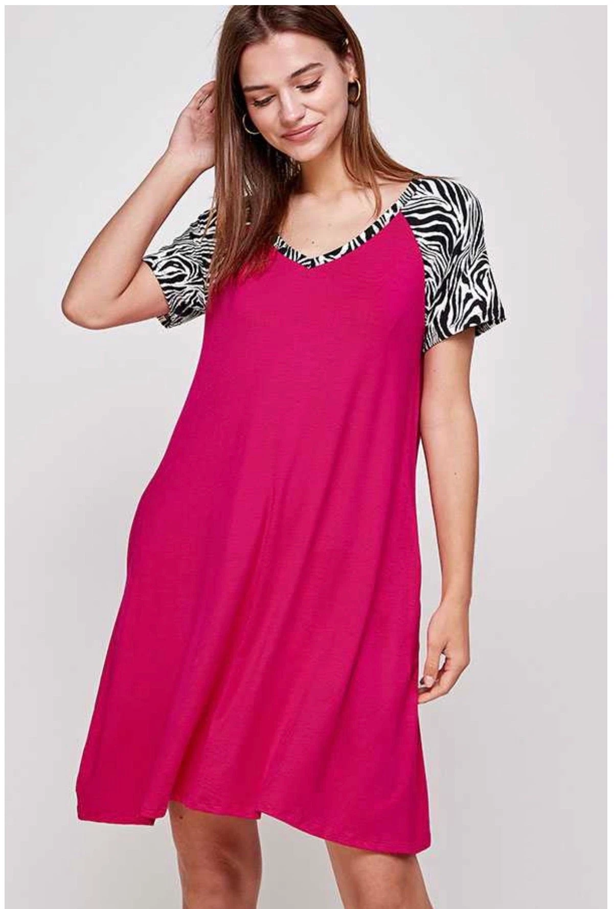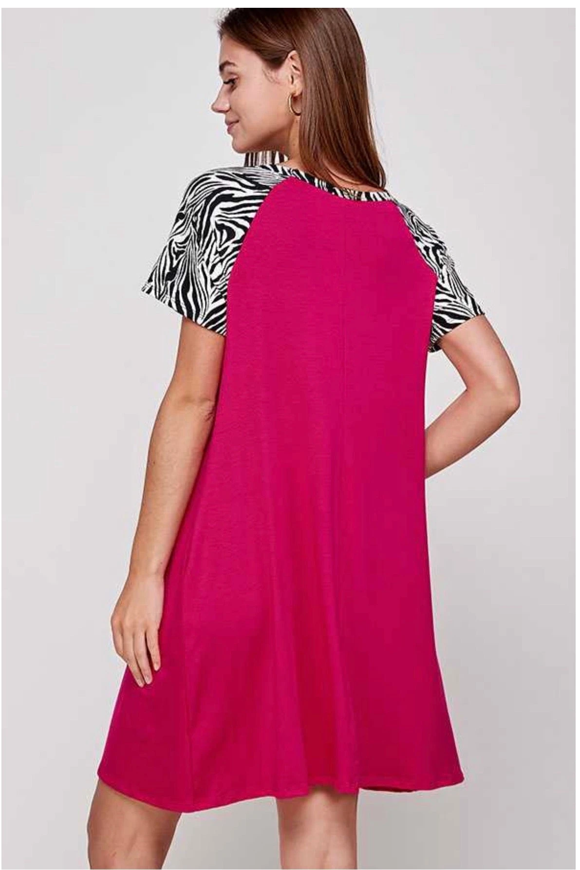 65 CP-M {Zebra Run} Fuchsia Dress W Zebra Sleeves PLUS SIZE 1X 2X 3X