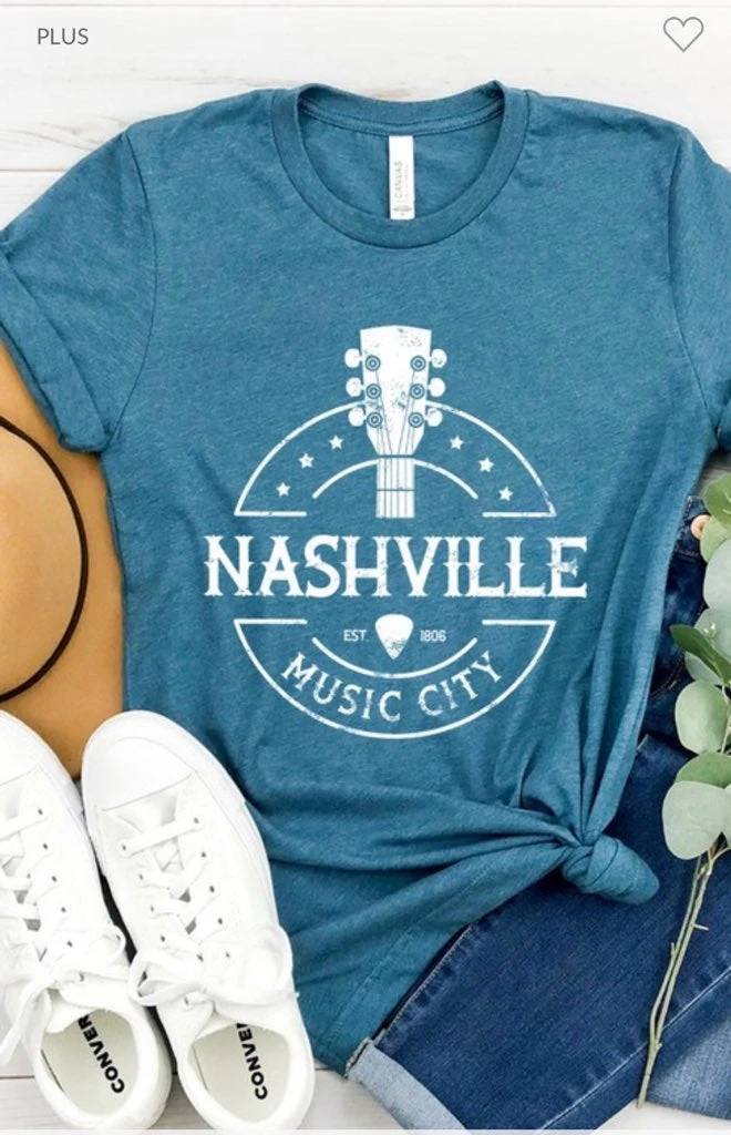 65 GT-F {Nashville Music City} Heather Teal Graphic Tee PLUS SIZE 2X 3X