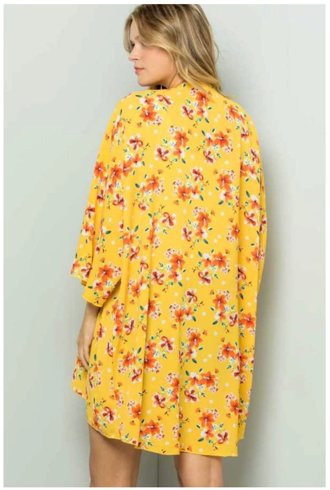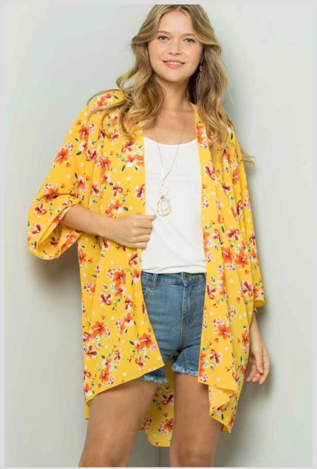 65 OT-F {Flowers In Sunshine} Yellow Floral Printed Cardigan PLUS SIZE