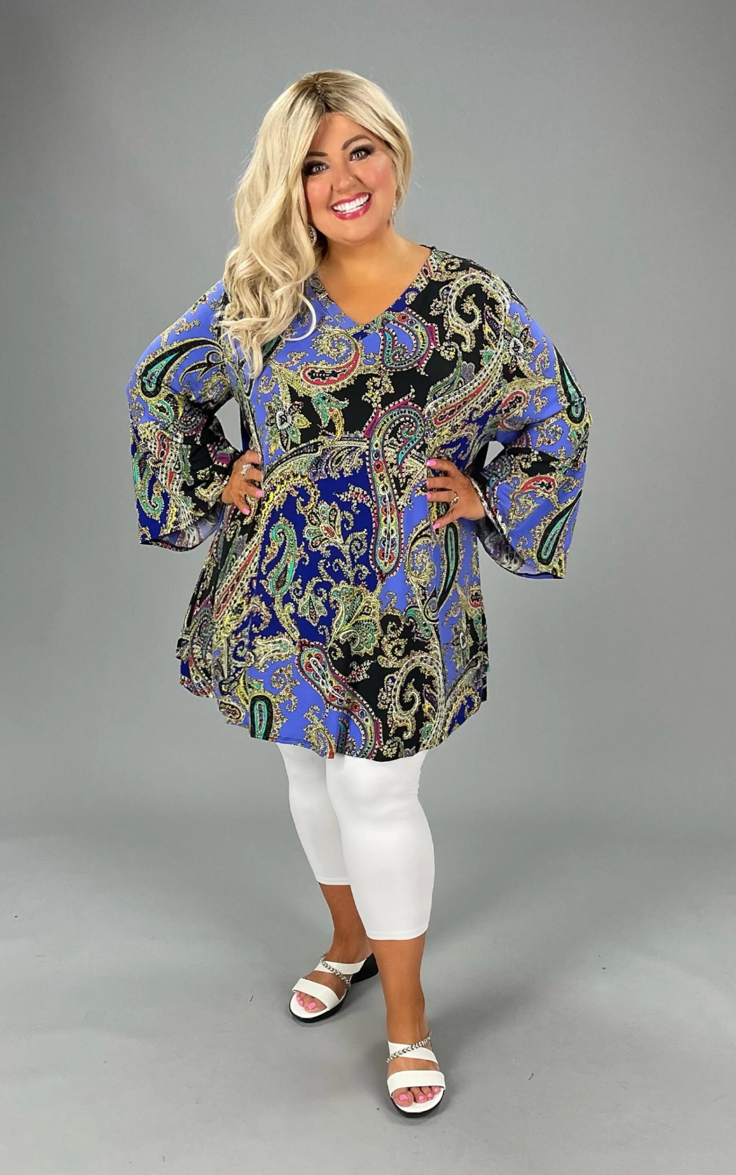 65 PQ {Give Me A Hand} Royal Blue Paisley V-Neck Tunic EXTENDED PLUS SIZE 3X 4X 5X
