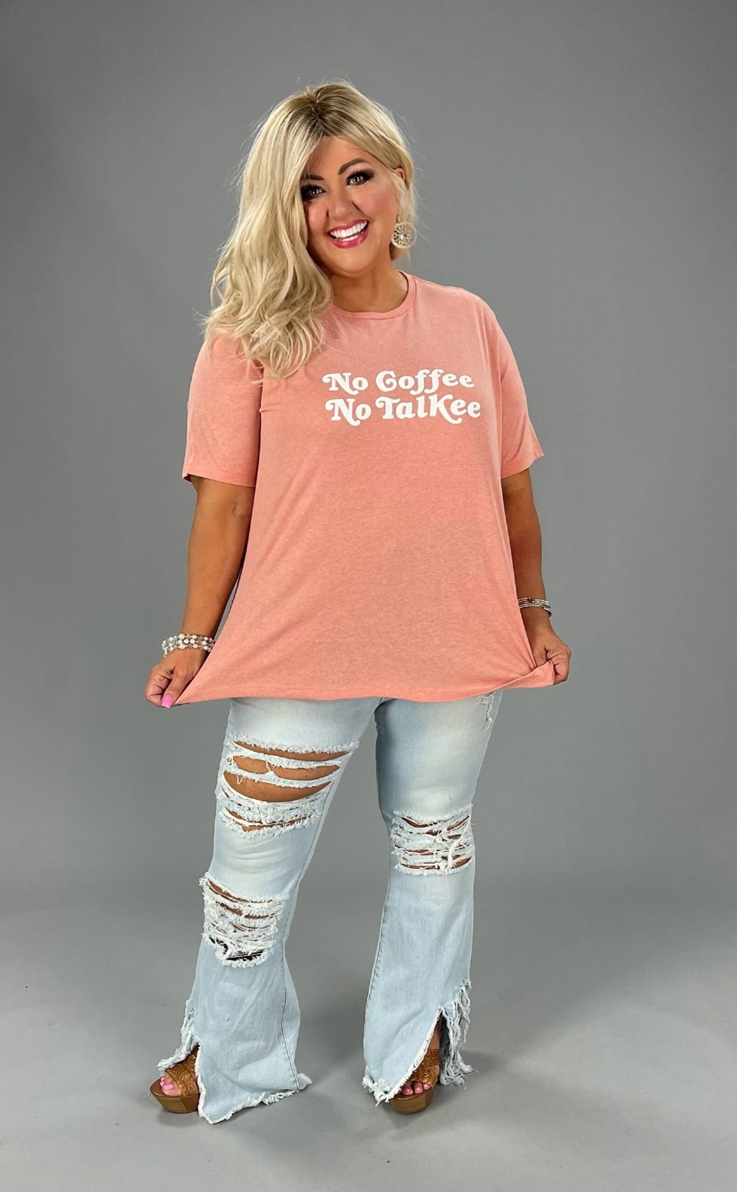 66 GT-L {No Coffee No Talkee} H. Coral Graphic Tee PLUS SIZE 3X