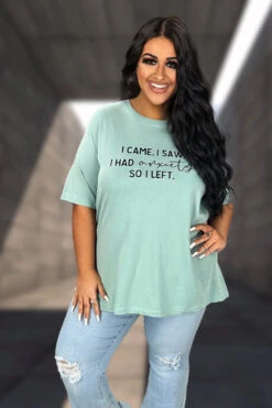66 GT-N {I Came I Saw I Had Anxiety I Left} H. Teal Graphic Tee PLUS SIZE 3X