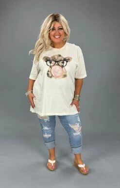 68 GT-K {Farm Cow} Cream Cow Print Graphic Tee PLUS SIZE 2X 3X