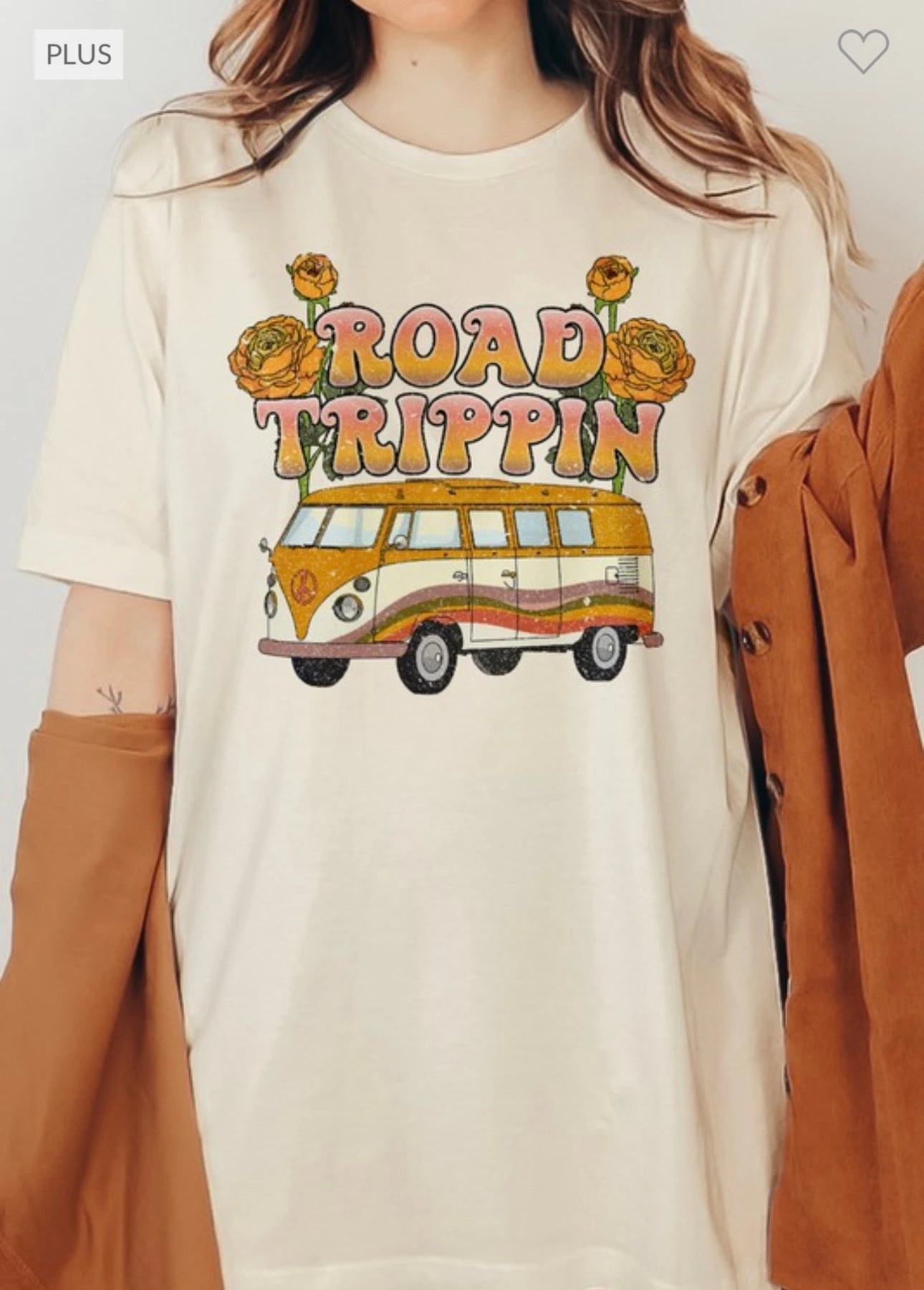 70 GT-M {Road Trippin} Cream Van Print Graphic Tee PLUS SIZE XL 2X