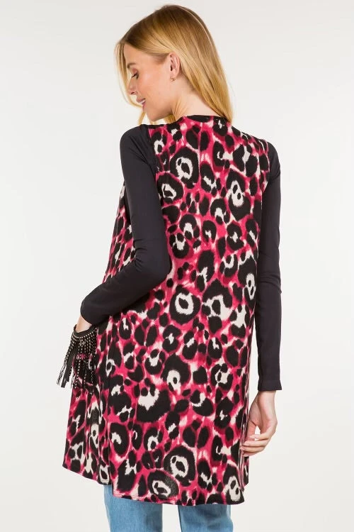 70 OT-M {Eye Catching} Black Animal Print Vest W/Pocket Detail PLUS SIZE 1X 2X 3X