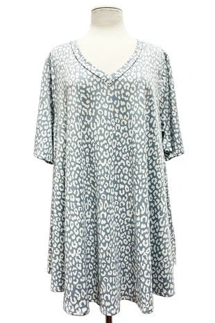73 PSS-L {Clothes That Smile} Blue Leopard Print V-Neck Top EXTENDED PLUS SIZE 3X 4X 5X