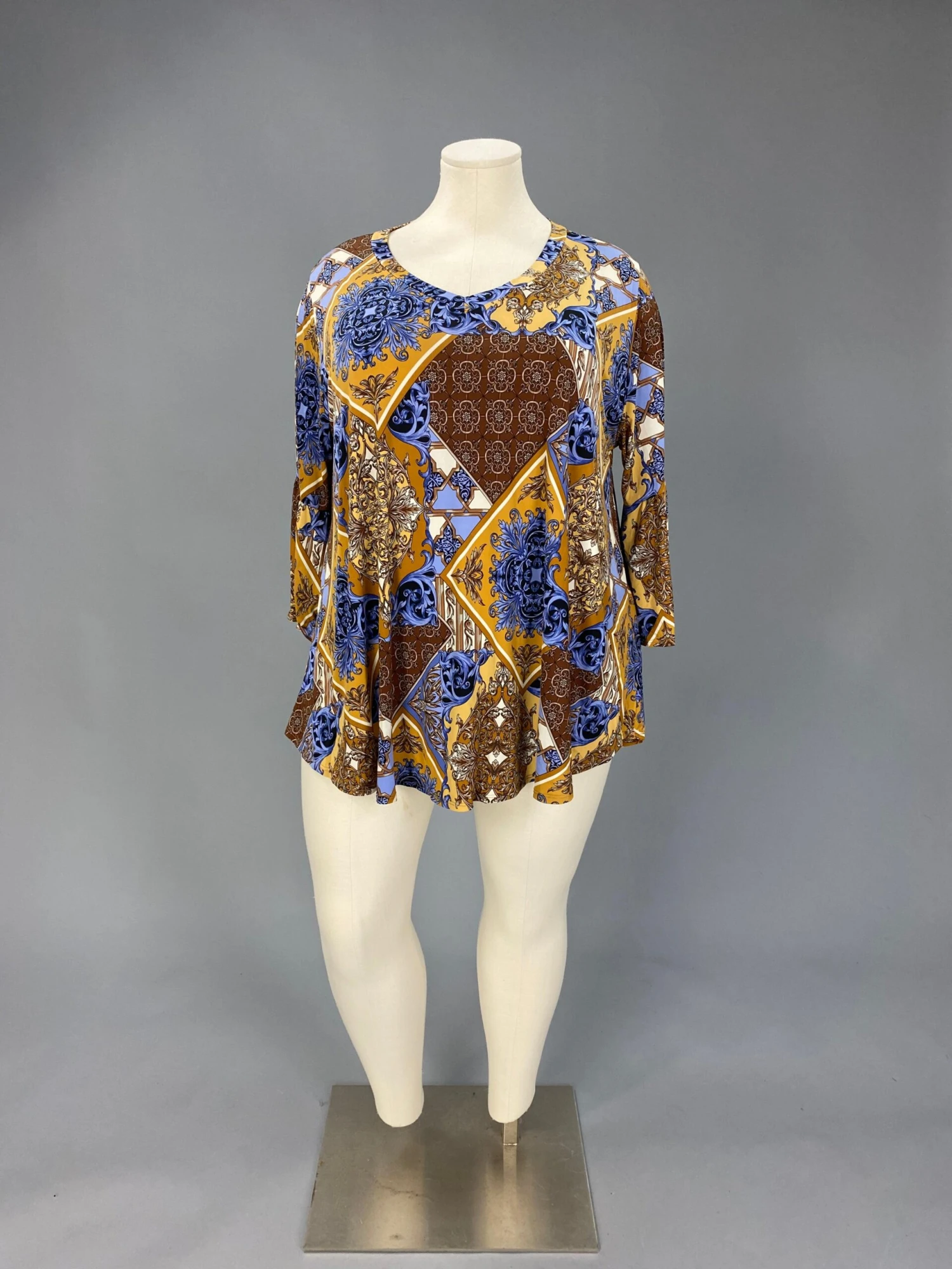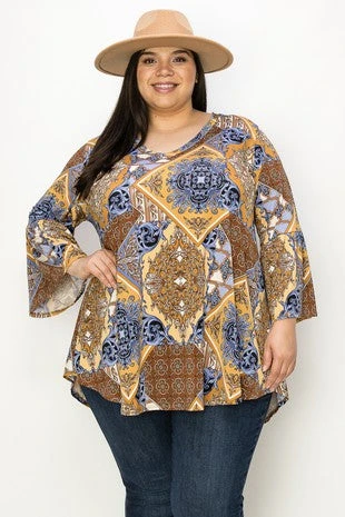 74 PQ {Posh Affair} Brown/Blue Mixed Print Top EXTENDED PLUS SIZE 3X 4X 5X