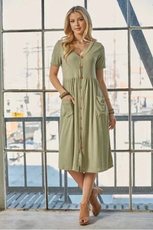 75 SSS-A {Simple Style} Sage Ribbed V-Neck Babydoll Dress PLUS SIZE 1X 2X 3X