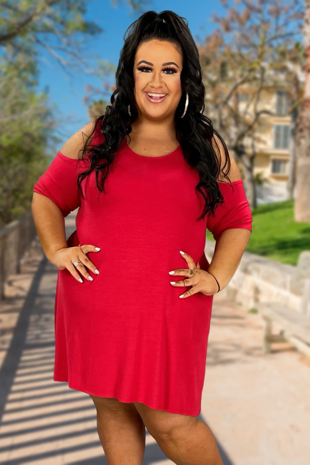 77 OS-A {Flirty Phase} Red Cold Shoulder Tunic PLUS SIZE XL 2X 3X