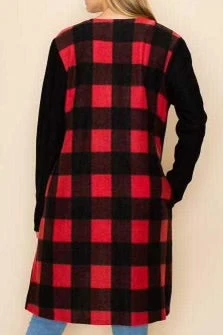 78 OT-Q {Warm Me Up} Red/Black Plaid Duster PLUS SIZE 1X 2X 3X
