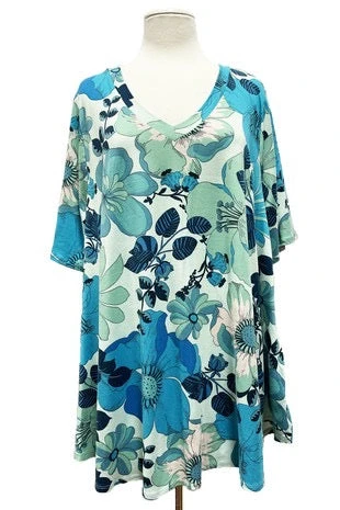 78 PSS-Q {Fashion Statement} Mint Floral V-Neck Top EXTENDED PLUS SIZE 3X 4X 5X