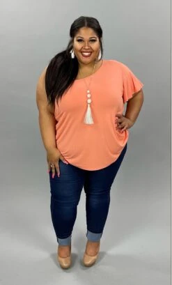 80 OS-D {Hang Loose} CORAL Tunic W/One Shoulder PLUS SIZE 1X 2X 3X