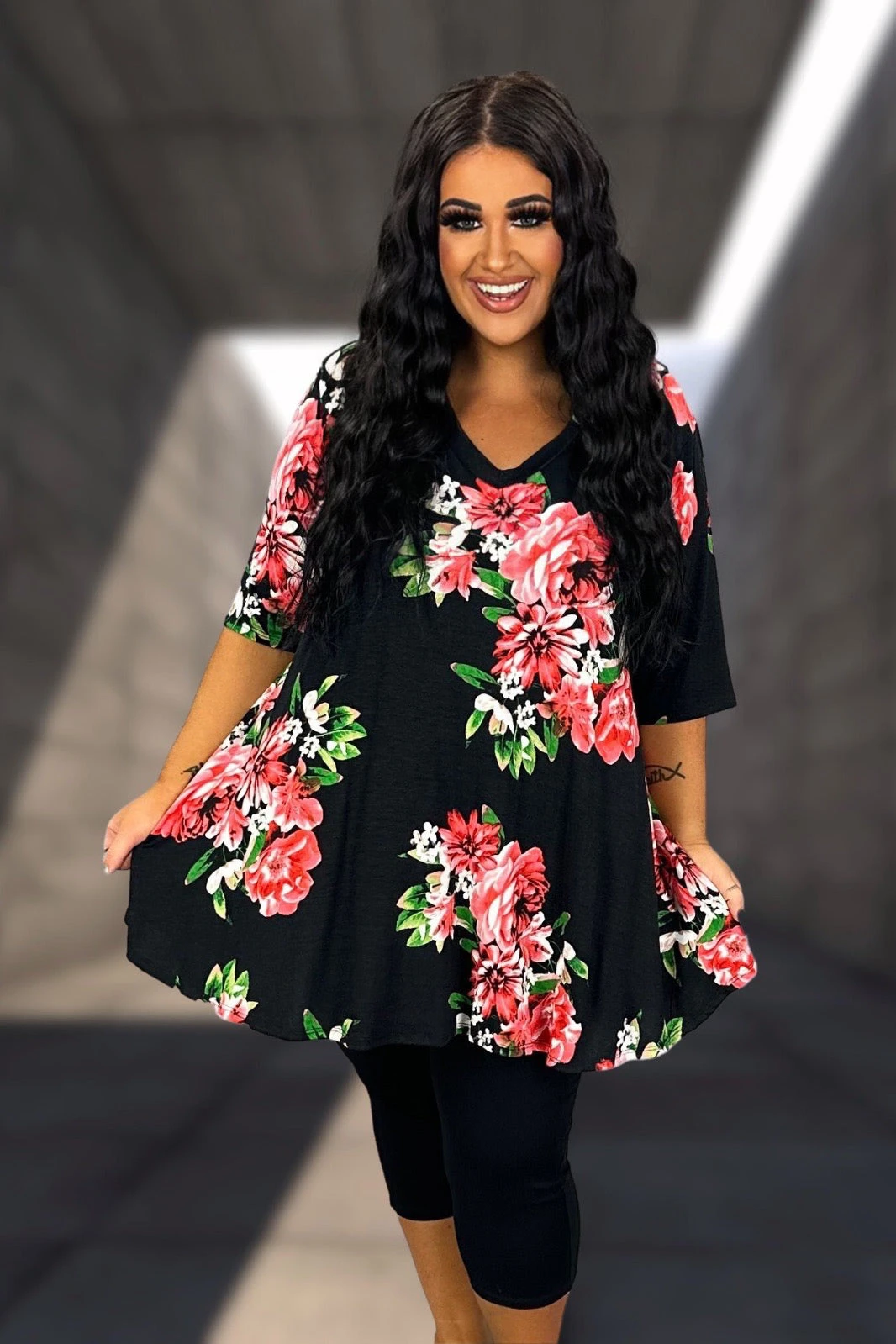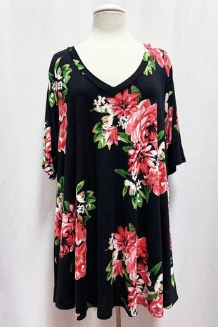 86 PSS {Boldly Blooming} Black Lg. Floral V-Neck Tunic EXTENDED PLUS SIZE 3X 4X 5X