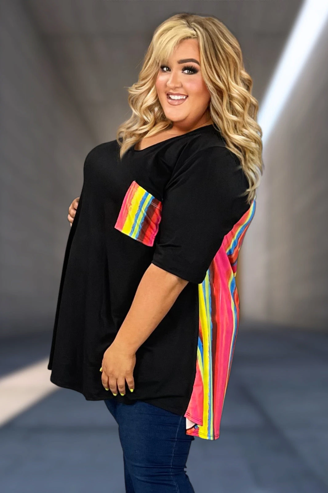 87 CP-A {Surrounded By Sunshine} Rainbow Striped Detail Tunic EXTENDED PLUS SIZE 3X 4X 5X
