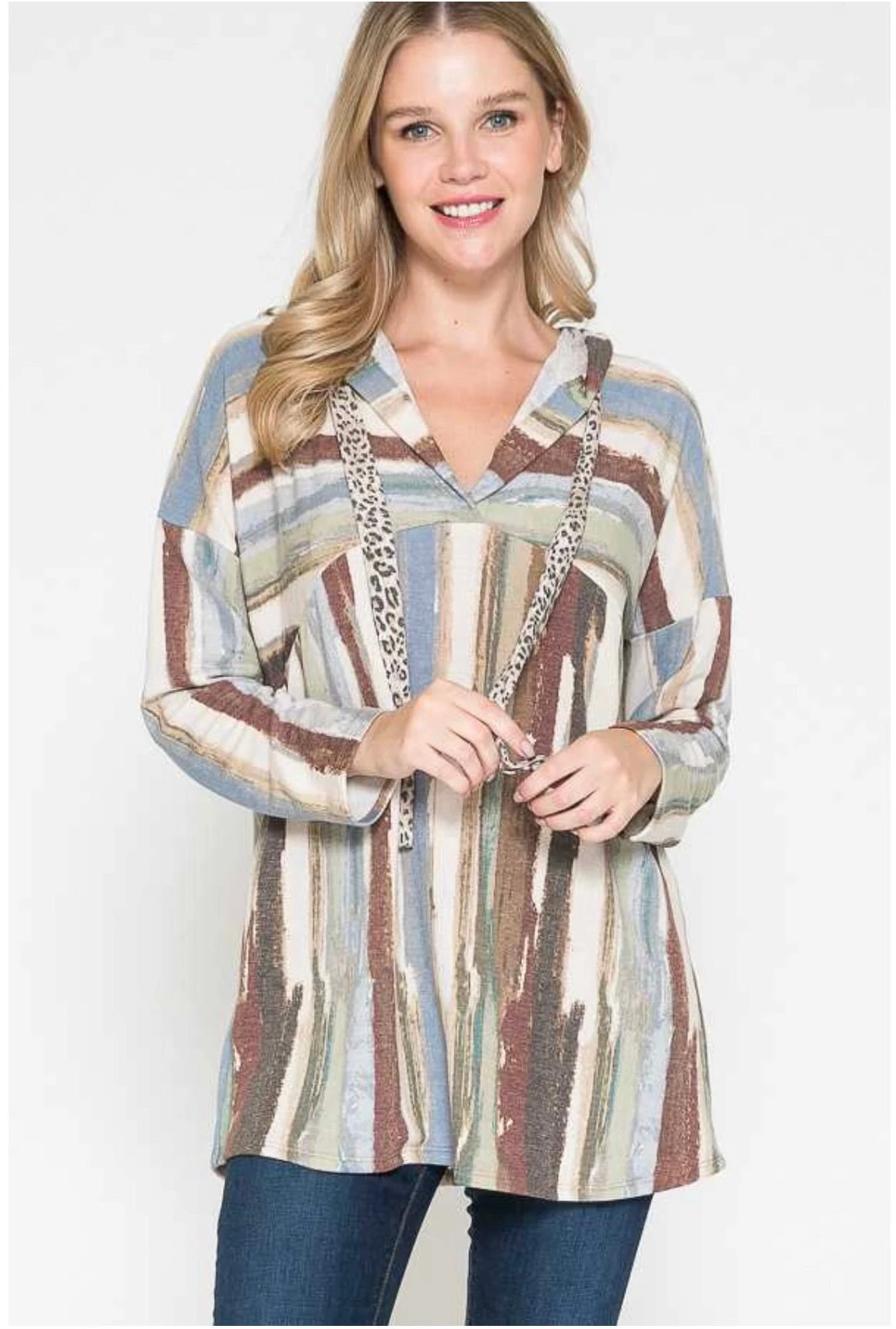 89 HD-I {On My Terms} Taupe/Brown Striped Hoodie PLUS SIZE 1X 2X 3X