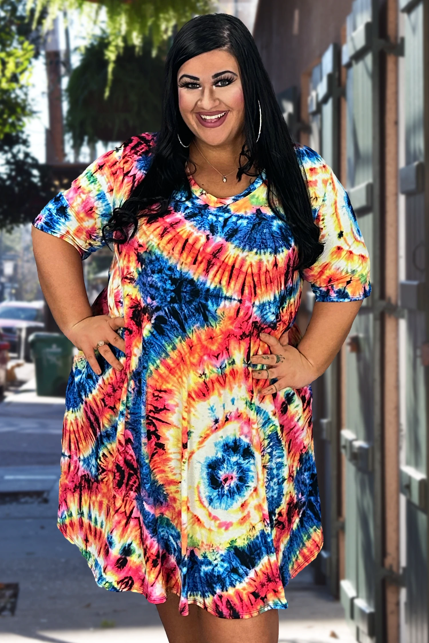 89 PSS-X {My Best View} Multi-Color Tie Dye V-Neck Dress EXTENDED PLUS SIZE 3X 4X 5X