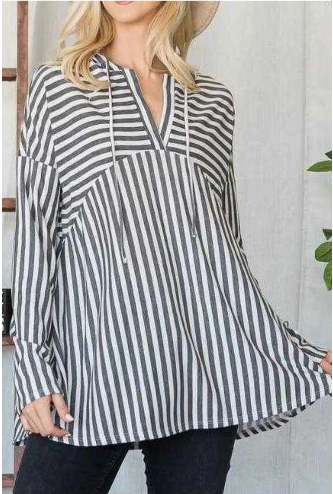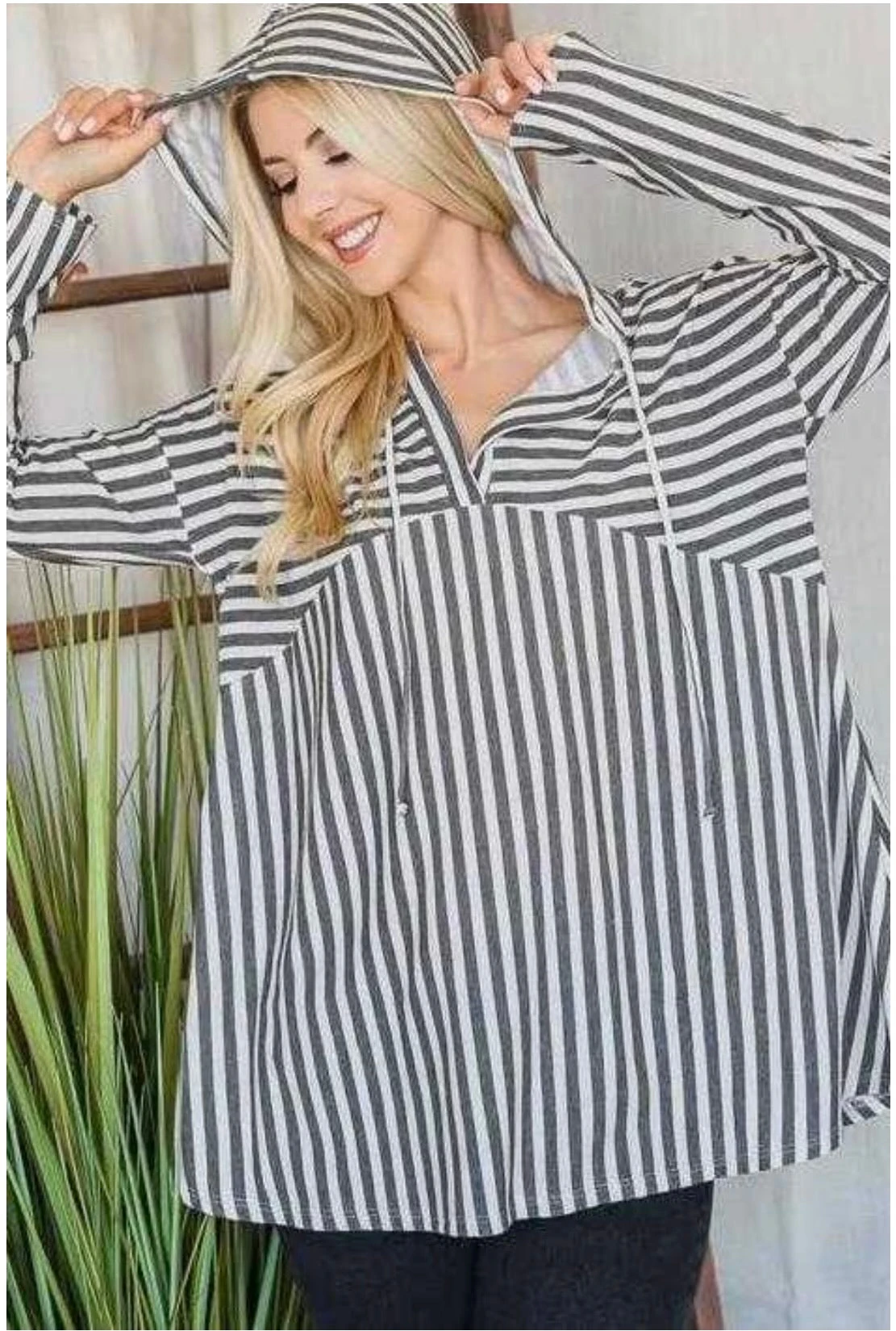 91 HD-C {Boss Lady Fav} Gray/Ivory Striped Hoodie PLUS SIZE 1X 2X 3X