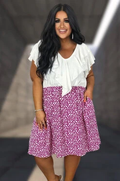 92 CP {Sweet Promises} Ivory/Magenta Print Ruffle Dress PLUS SIZE XL 2X 3X