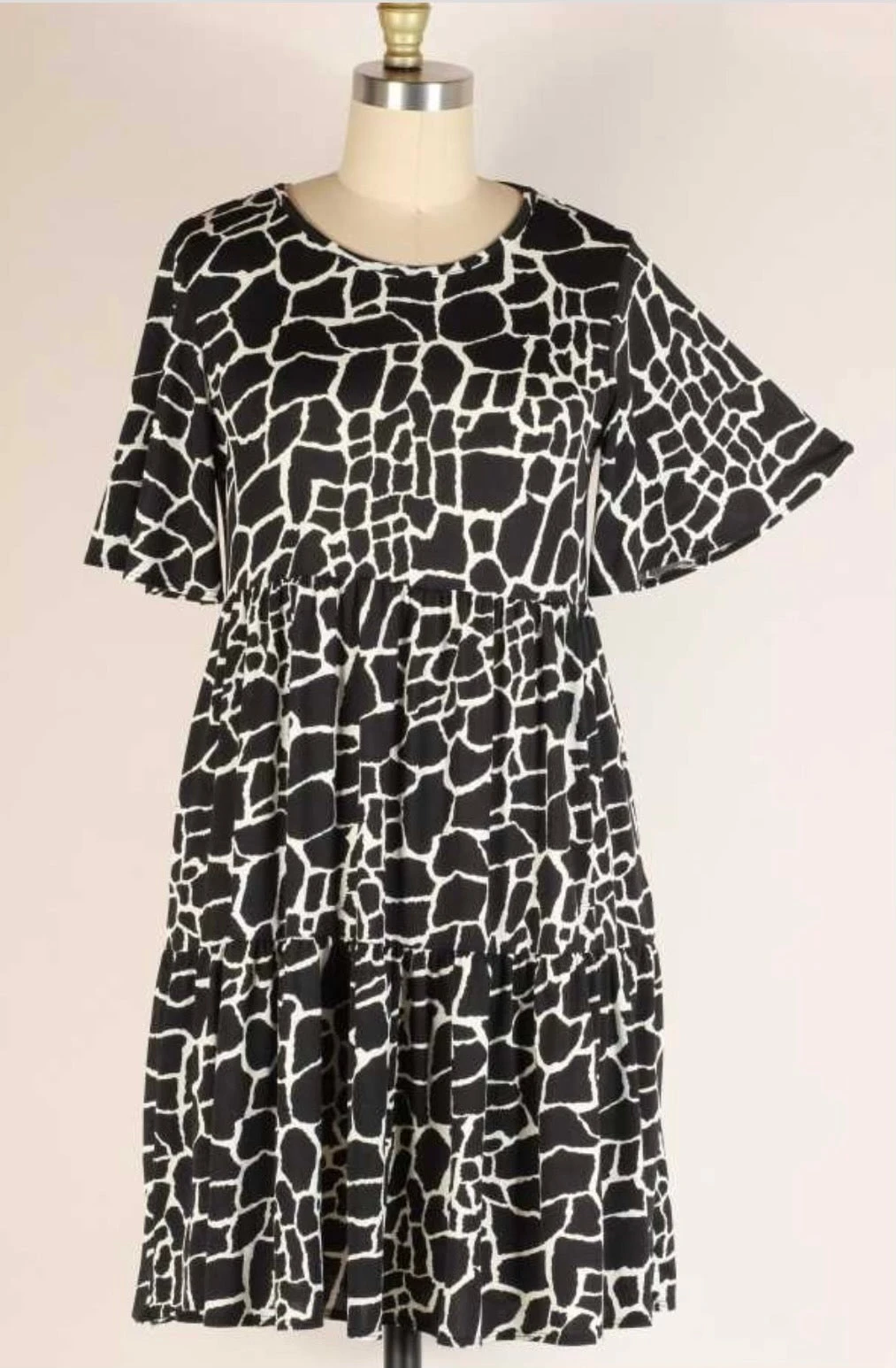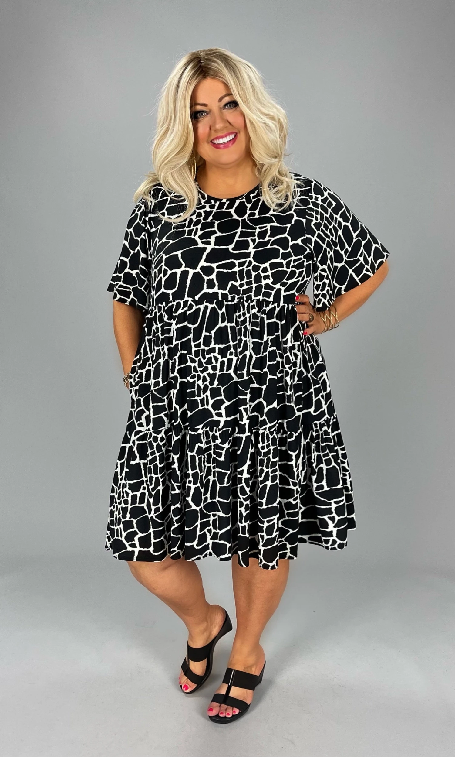 95 PSS-A {Cooling Trend} Black Giraffe Print Tiered Dress PLUS SIZE 1X 2X 3X SALE!!!