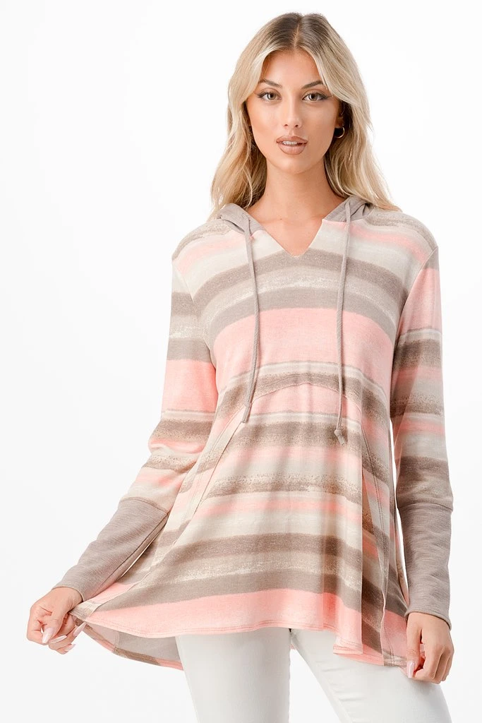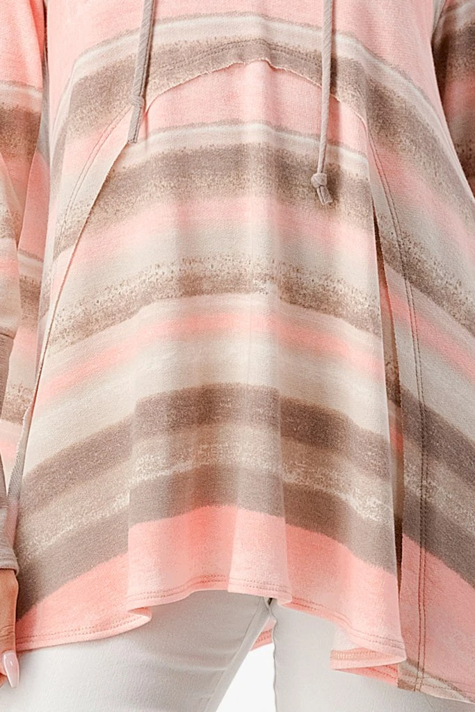 96 HD-J {Sweetness Is Here} Coral/Mocha Striped Hoodie PLUS SIZE 1X 2X 3X