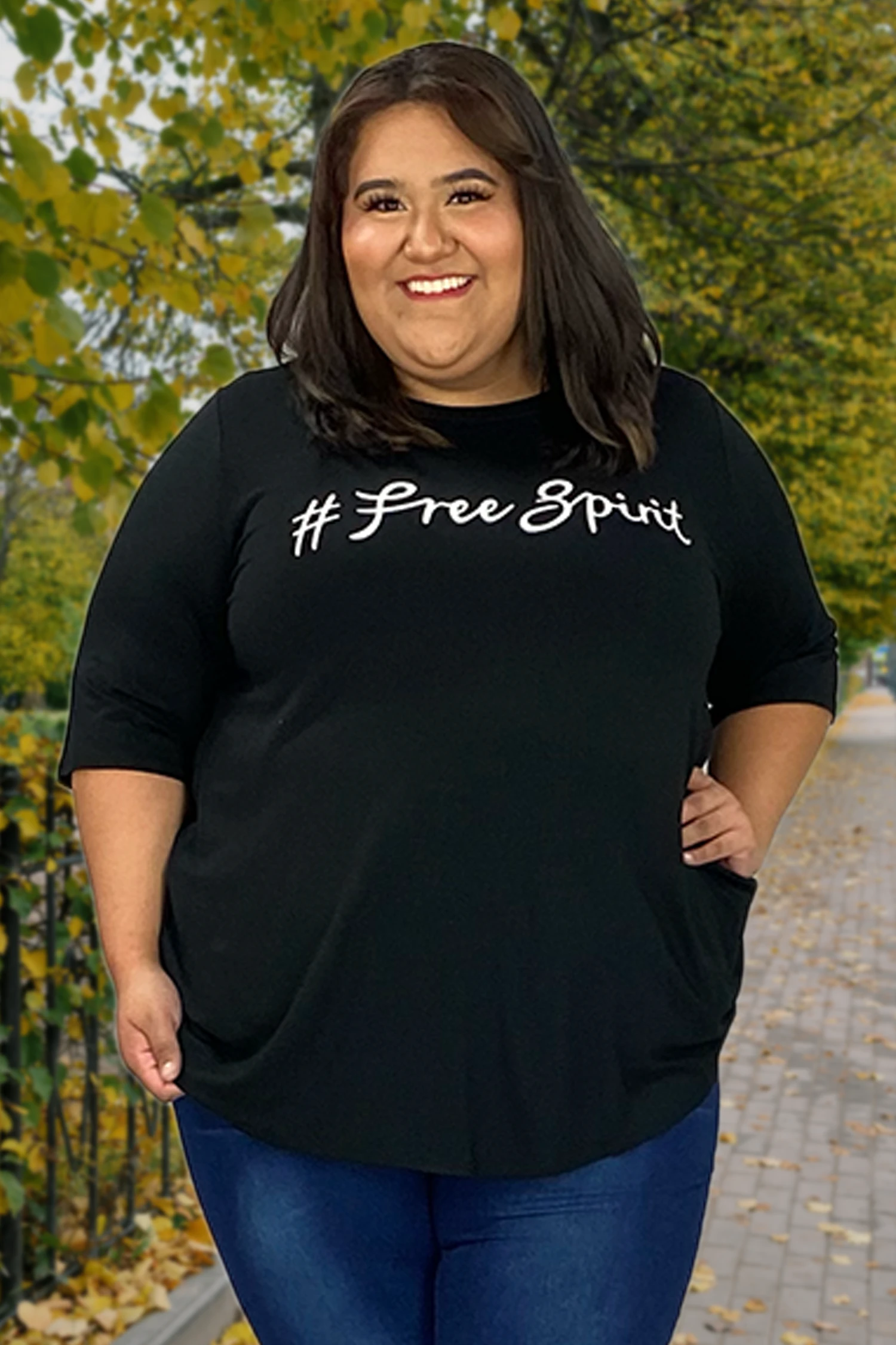 96 Or 17 GT-B {Free Spirit} Black #Free Spirit Graphic Tee CURVY BRAND!! 3X 4X 5X 6X