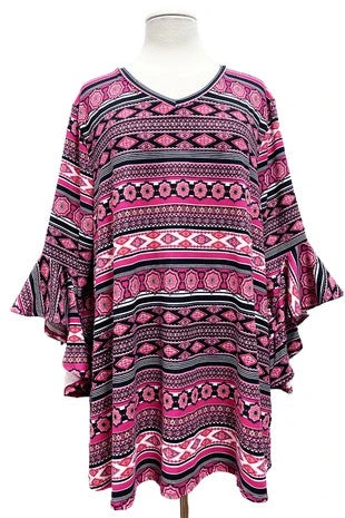 96 PQ {Take The Time} Hot Pink/Black Stripe Print Top EXTENDED PLUS SIZE 4X 5X 6X
