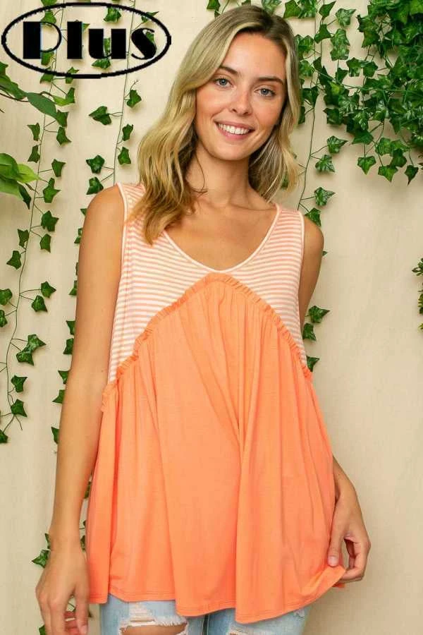 98 SV-D {All For Fun} Salmon Stripe Print Top PLUS SIZE 1X 2X 3X