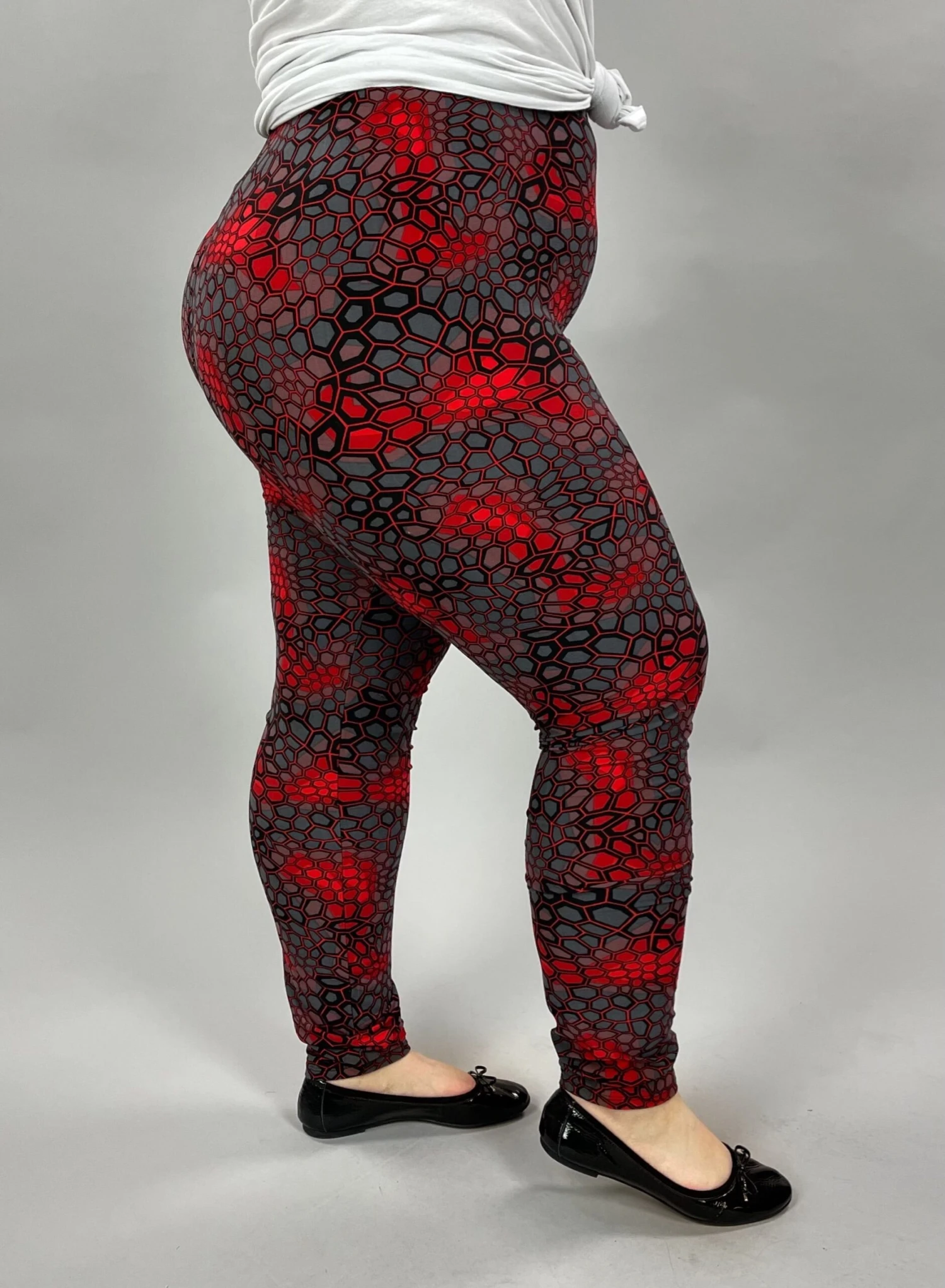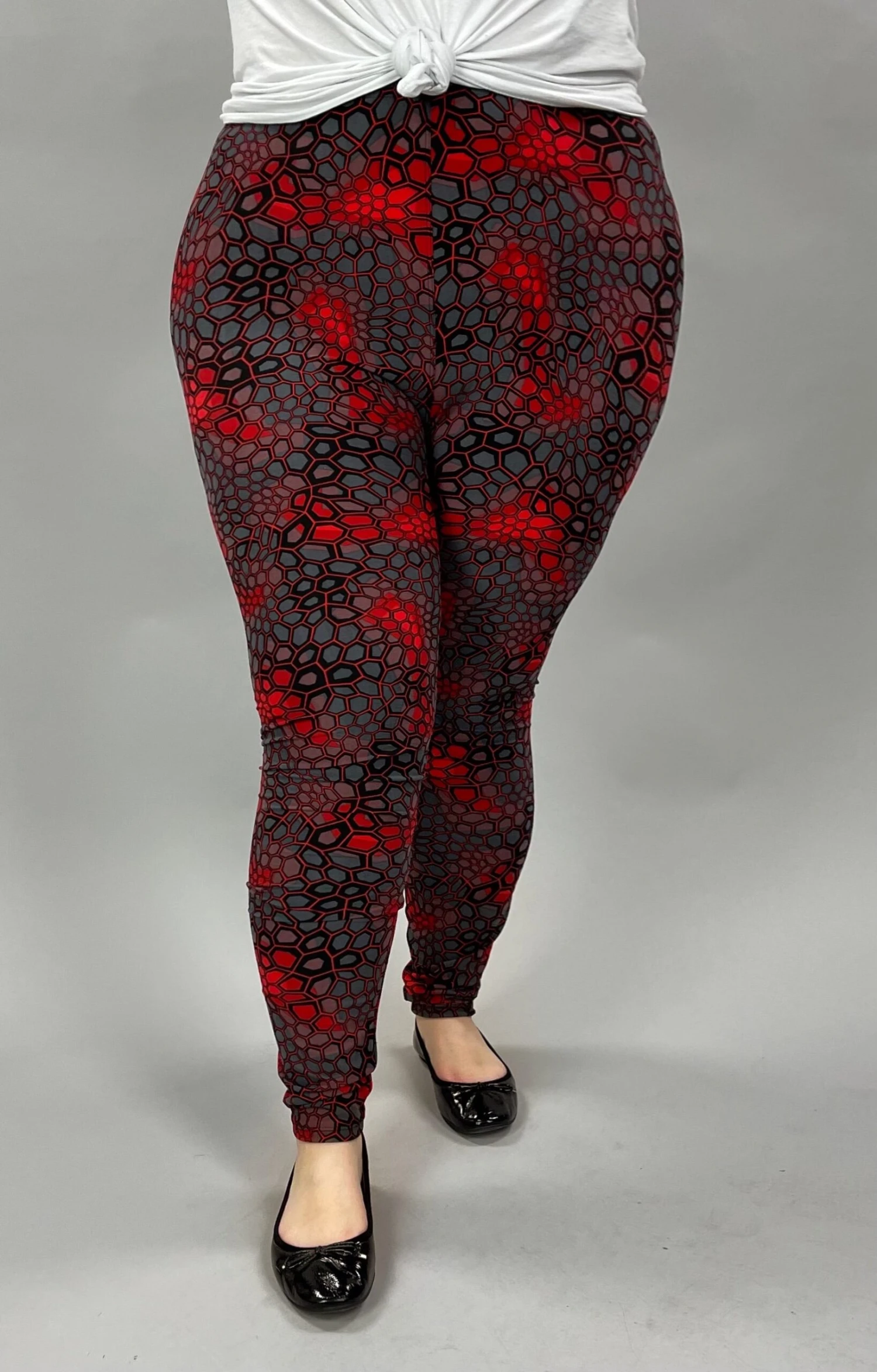 BIN-98 {Keeping The Moment} Red/Gray Print Leggings EXTENDED PLUS SIZE 3X/5X